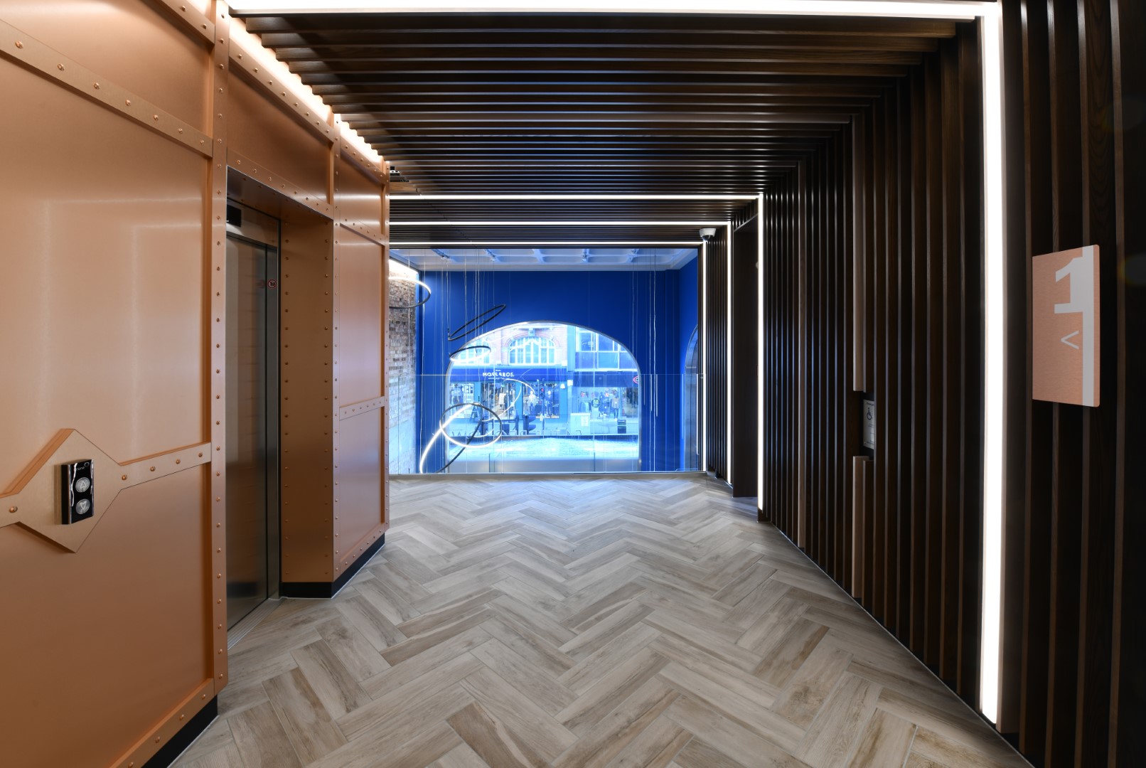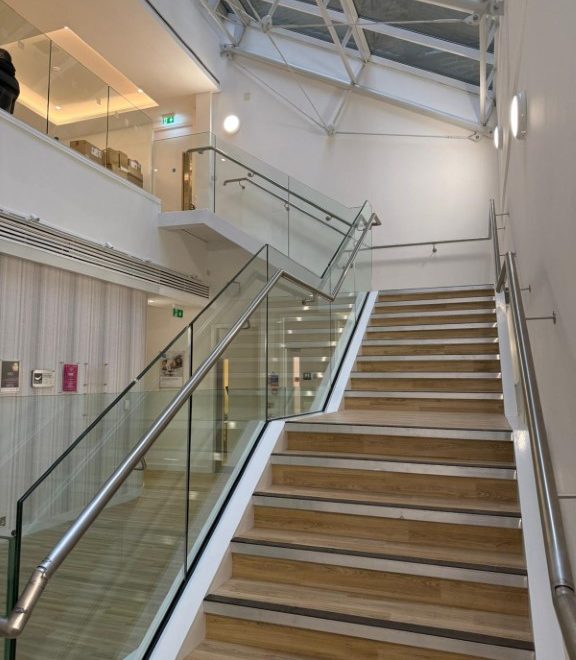 We then installed a brand-new Steel panelled staircase, bespoke seating benches and planters, High- and low-level lighting and Signage throughout.